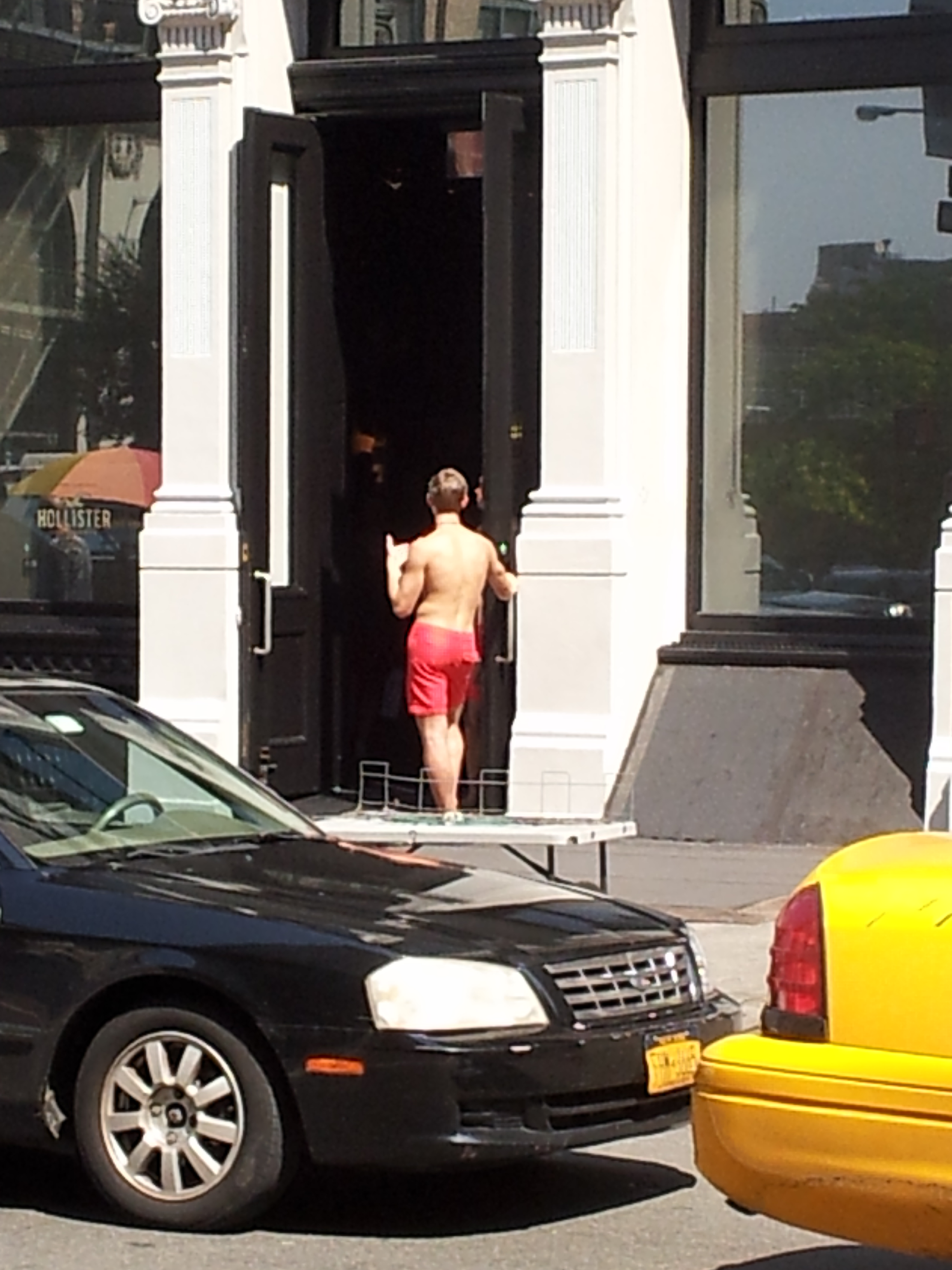 Yesterday I went to Cutler Salon in SoHo and on my way back to the subway stop, I saw something I’ve seen many times before however, was reminded of how funny, weird and odd it was. Hollister California (on the corner of Broadway and Houston) is a brand that describes itself as, ‘Classical, preppy style with an effortless attitude’. It is a brand for young, hot, tanned, pretty, cool dudes and chicks that evoke the ideal Californian beach lifestyle.
